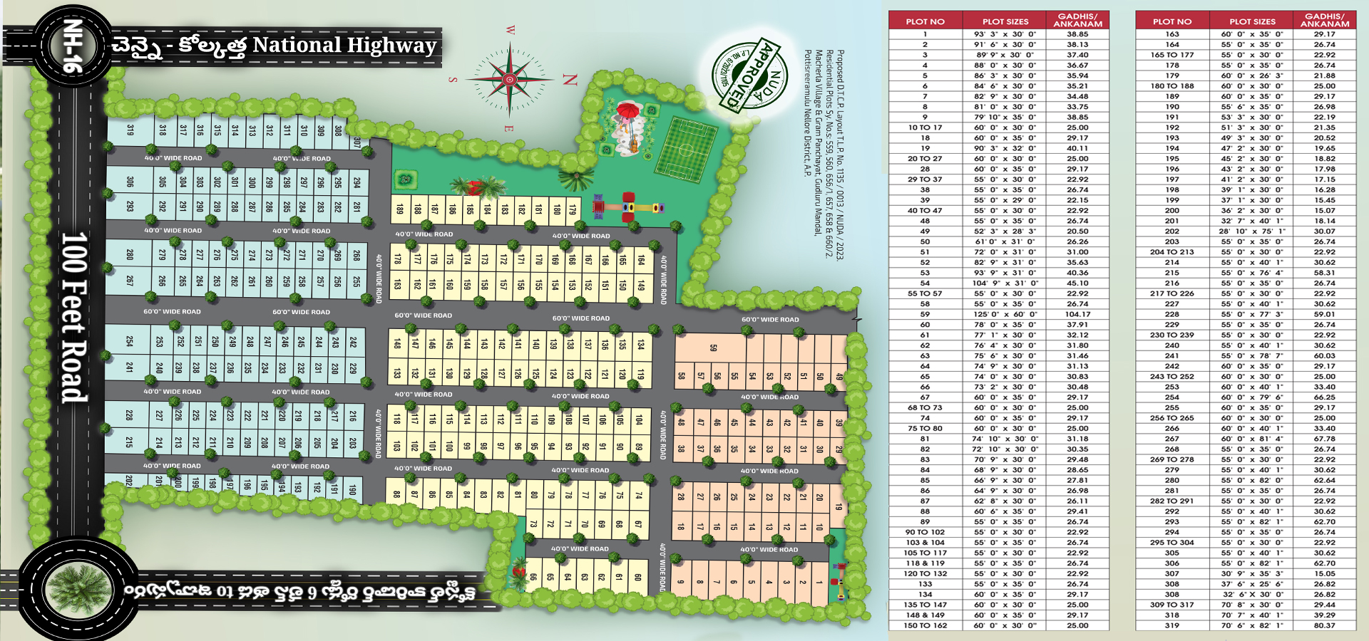 Our plots are budget friendly, Our venture is located nearby Tettu and Ramayaptanam Road. It is easily connectivity to Gudluru, Kavali and Ongole. Customer who wants to purchase open plot in our venture they get many of advantages and growth of investment. Our project is NUDA approval with all government permissions. This venture is Phase-1 and future soon we are planning to phase-2 venture it is in 75 acers.